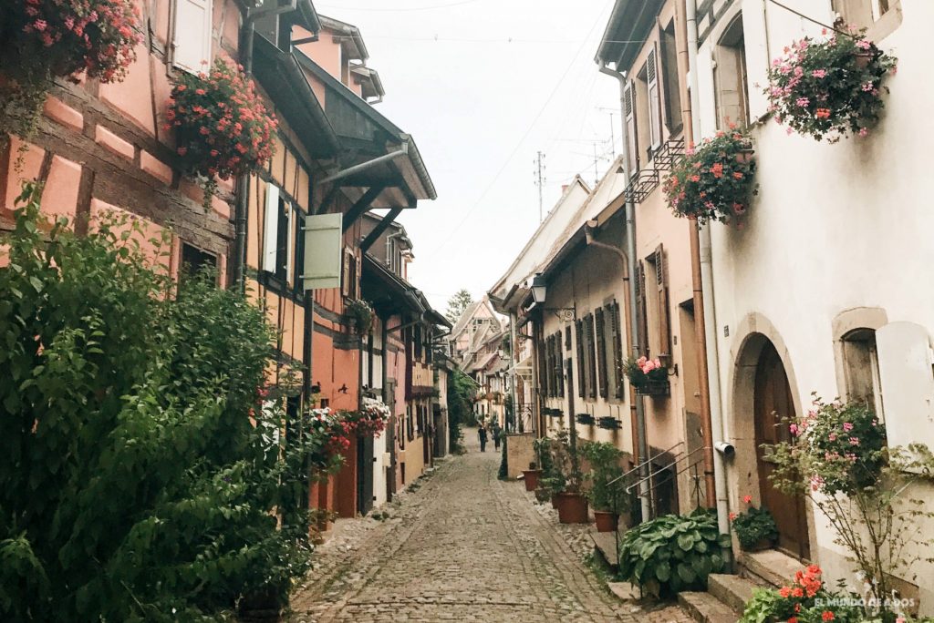Eguisheim cuenta con las mismas casas de colores con entramado de madera que se repiten por toda la región de Alsacia. Sin embargo, aquí se presentan apiñadas una al lado de la otra a lo largo de calles estrechas sin final. Esto hizo que fuera votada como “Pueblo francés favorito en 2013” (premio que en 2017 ganaría Kaysersberg, ubicada a pocos kilómetros).